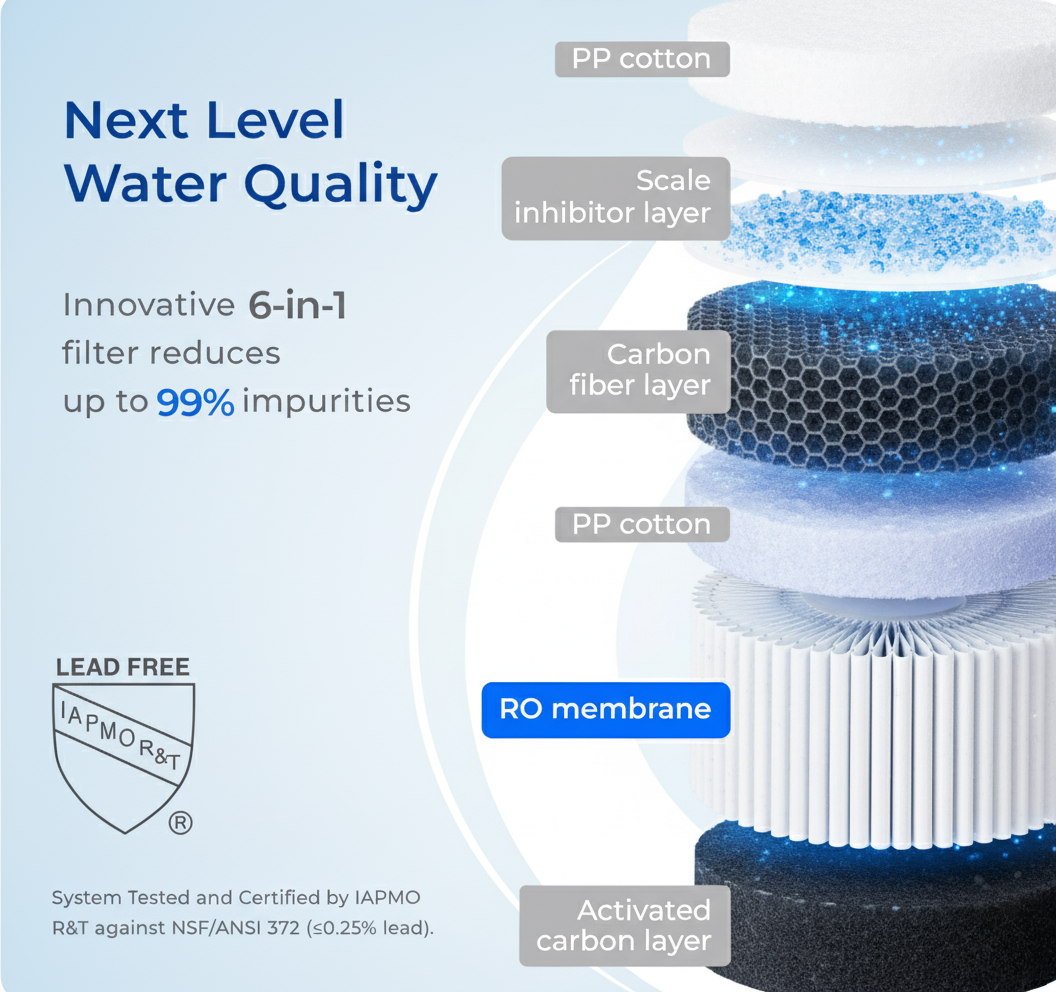 By providing NSF-certified filtration, convenient maintenance, and real-time performance monitoring, you can eliminate hidden contaminants, reduce health risks, and support your family's safety and vitality.